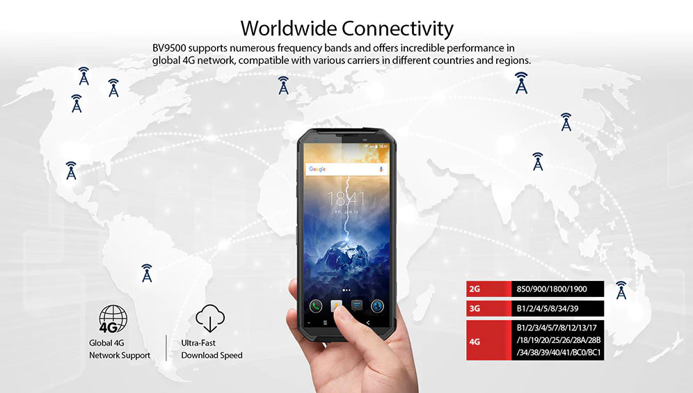 Le smartphone Blackview BV9500 est équipé d’une batterie lithium-ion de 10.000 mAh. Donc vous pourrez l’utiliser de nombreuses heures sans avoir à le recharger. Cette performance est vraiment utile, surtout lorsque vous partez en voyage ou déplacement et que vous ne voulez pas vous soucier de l’autonomie de votre téléphone. Il peut être rechargé en filaire de façons classique ou avec un chargeur sans fil Qi. La fonction de charge rapide est performante puisque vous pouvez récupérer 100% de la batterie en 3,5 heures.