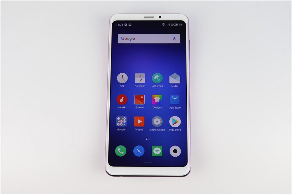 Classique c’est la meilleure façon de décrire le Meizu Note 8. Son corps en métal est agréable au toucher et ses bords ont été arrondis pour améliorer la prise en main. La version de couleur violette est assez originale et attrayante. Il est également disponible en noir, rouge et bleu. Le Note 8 possède un écran de 5,9 pouces, mais ses dimensions restent compactes : 154 x 75,5 x 8 mm. Il pèse 168 grammes ce qui n’est pas excessif pour un smartphone moderne. Vous pouvez le glisser dans votre poche sans gêne. Sur l’arrière on trouve le flash, le double capteur photo et le capteur d’empreinte digitale. Les trois éléments sont placés l’un en dessous de l’autre. Il y a également le logo Meizu qui est imprimé un peu plus bas. Le capteur d’empreinte digitale fonctionne normalement (8 tentatives sur 10 de réussies), votre doigt se place facilement dessus.