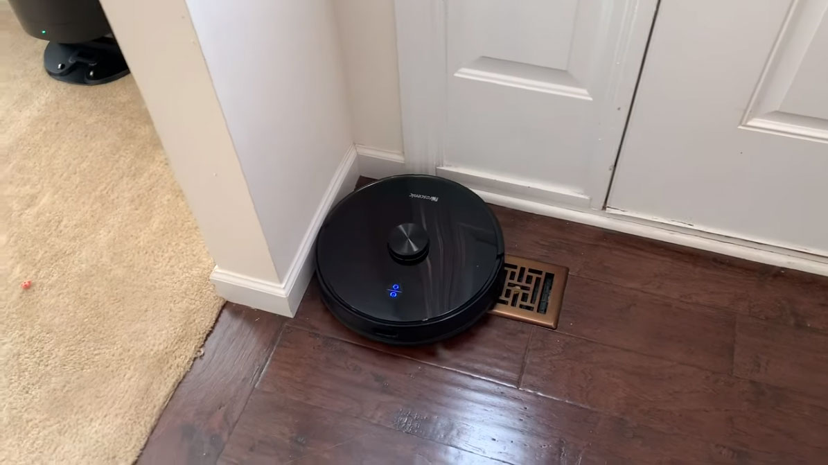 Notre premier test de base a été de vérifier que les capteurs de vides fonctionner correctement. Une fois placé sur notre bureau l’aspirateur robot a bel et bien su détecter le vide. Après nous l’avons placé par terre et l’avons laissé réaliser la cartographie des différentes pièces. Il commence par détourer la pièce (longé les plaintes) et finit par faire des allers et retours au centre de la pièce. Nous avons pu remarquer qu’il détecter correctement les obstacles. Point positif le robot aspirateur détecte les tapis. La puissance d’aspiration est augmentée quand il est sur ce type de surface. C’est un détecteur qui lui permet de savoir qu’il est sur un tapis. Cela lui permet d’augmenter la puissance de sussions pour aspirer le maximum de poussières.